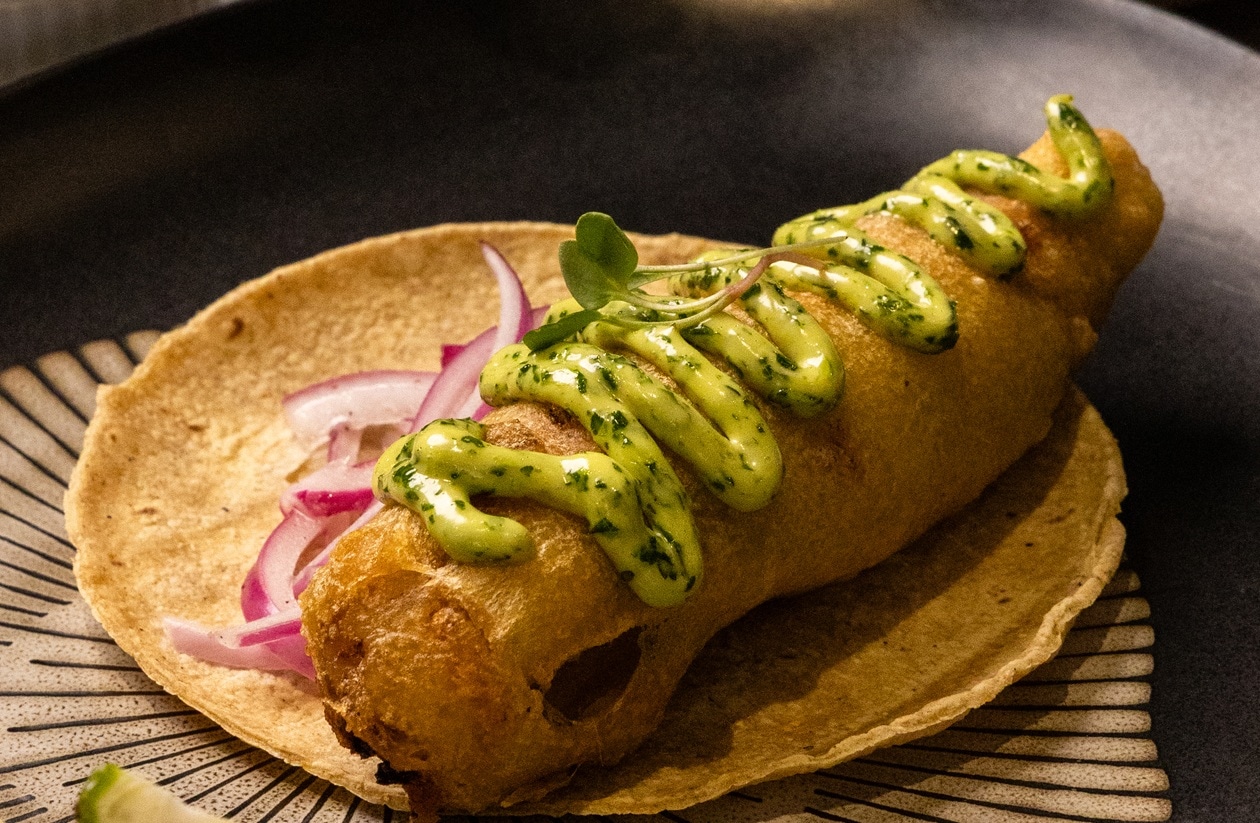 Tacos de Chile Güero Relleno de Marlín Capeado