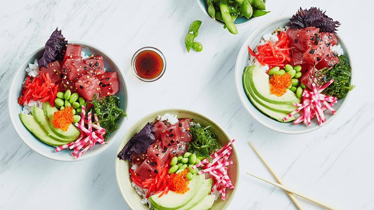 Una de las últimas tendencias para pescados y mariscos son los tazones personalizables. El salmón, atún y camarones son perfectos para este tipo de platillos. La idea es elegir una base de arroz, pasta o ensalada y agregar una variedad de toppings que lo hagan más interesante: mango, pepino, edamames, cebollín, ajonjolí, queso… las opciones son infinitas.